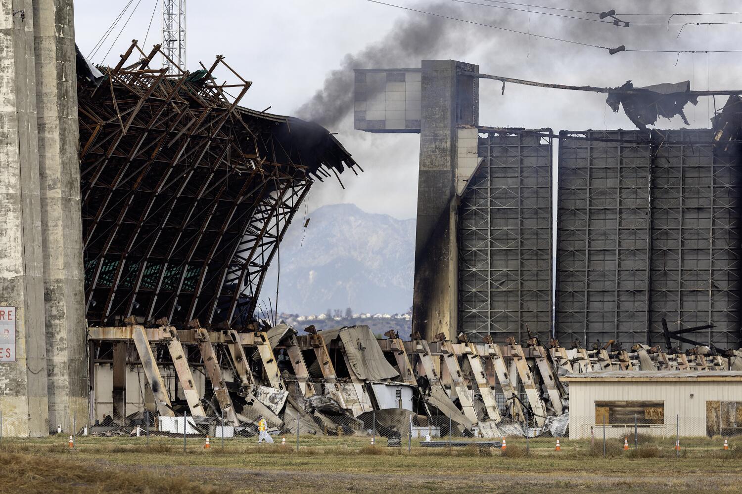 Deconstruction of the hangar ought to be accomplished within the subsequent day or two, Tustin officers mentioned Saturday. Plans name for extinguishing all remaining hotspots of the hearth, utilizing heavy tools excavators to take away particles and clearing roadways so water vehicles can attain all areas of the hanger.